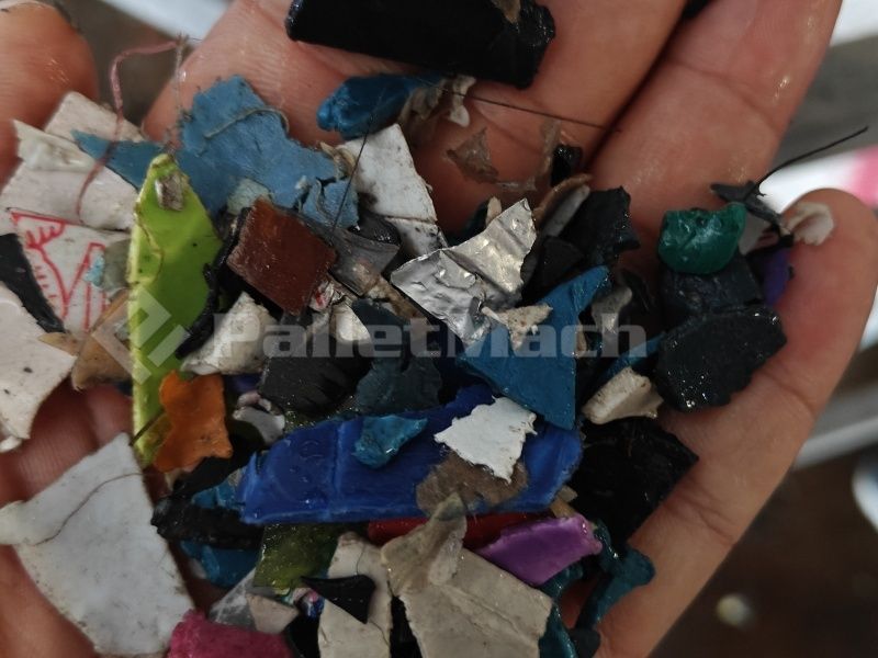 PalletMach's team conducted on-site research and found that only a small portion of the washed, high-quality material was suitable for injection molding. A significant volume of sinkers and fragmented particles presented major PP/PE waste recycling difficulties. Furthermore, metal contaminants mixed within the raw materials posed a potential risk to the stability of the downstream production process.