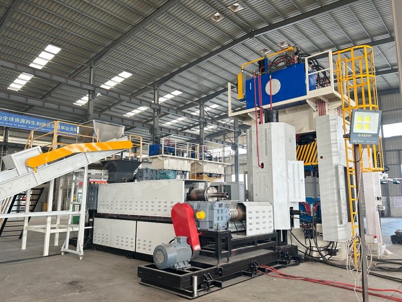 1. Multi-Stage ExtruderThe production line is equipped with a multi-stage extruder featuring precision temperature control. This ensures that mixed waste materials with different melting points (such as PE and PET) are fully and evenly plasticized, laying a solid foundation for the molding process.