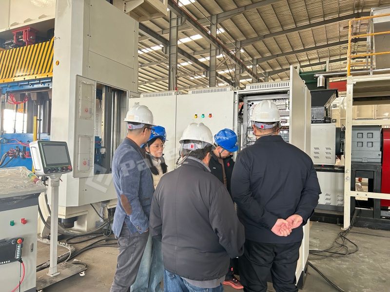 During the visit, the Indonesian clients raised technical questions regarding the compatibility of raw materials, energy consumption, and pallet load-bearing capacity. By closely observing the actual operating status of the waste plastic pallet press machine, the clients gained a strong appreciation for the durability, manufacturing precision, and production efficiency of PalletMach equipment.