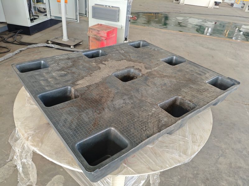 The 1,250-ton model of our waste plastic pallet press machine operates at 75 kW and can stably produce 20 plastic pallets per hour.