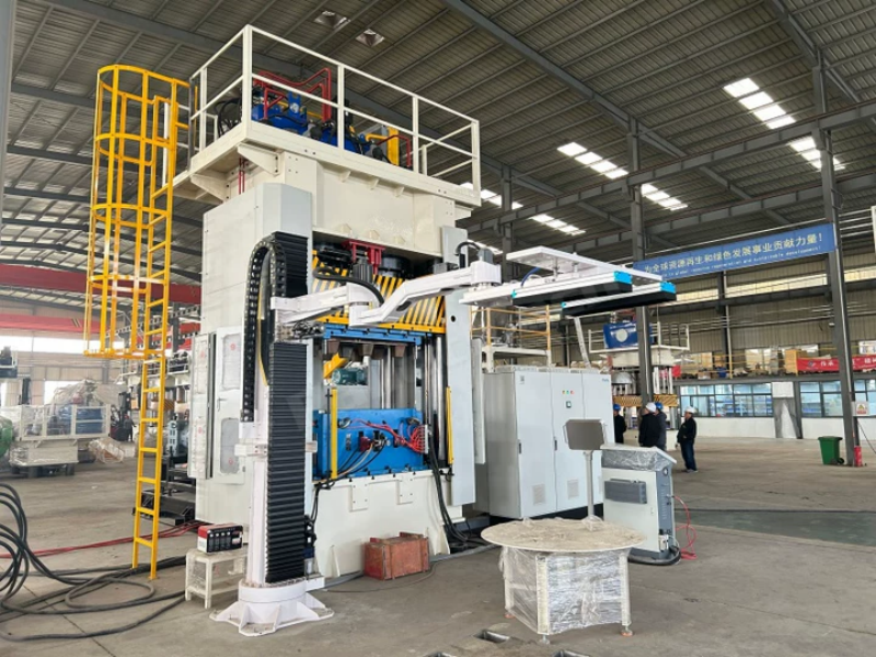 3. Plastic Molding PressThe waste plastic pallet press machine features a unique three-beam, four-column structure, providing a rigid frame capable of withstanding thousands of tons of working pressure. It is equipped with high-quality hydraulic components, ensuring smooth, vibration-free operation.