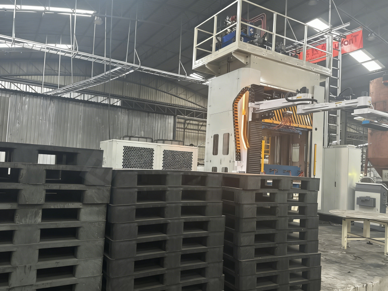 Once raw materials were fed into the line, the equipment operated smoothly. Plastic pallets with tight structural integrity and smooth surfaces were precisely removed by robotic arms. The finished products demonstrated outstanding flatness, load-bearing capacity, and color consistency—clear indicators of high-quality manufacturing.